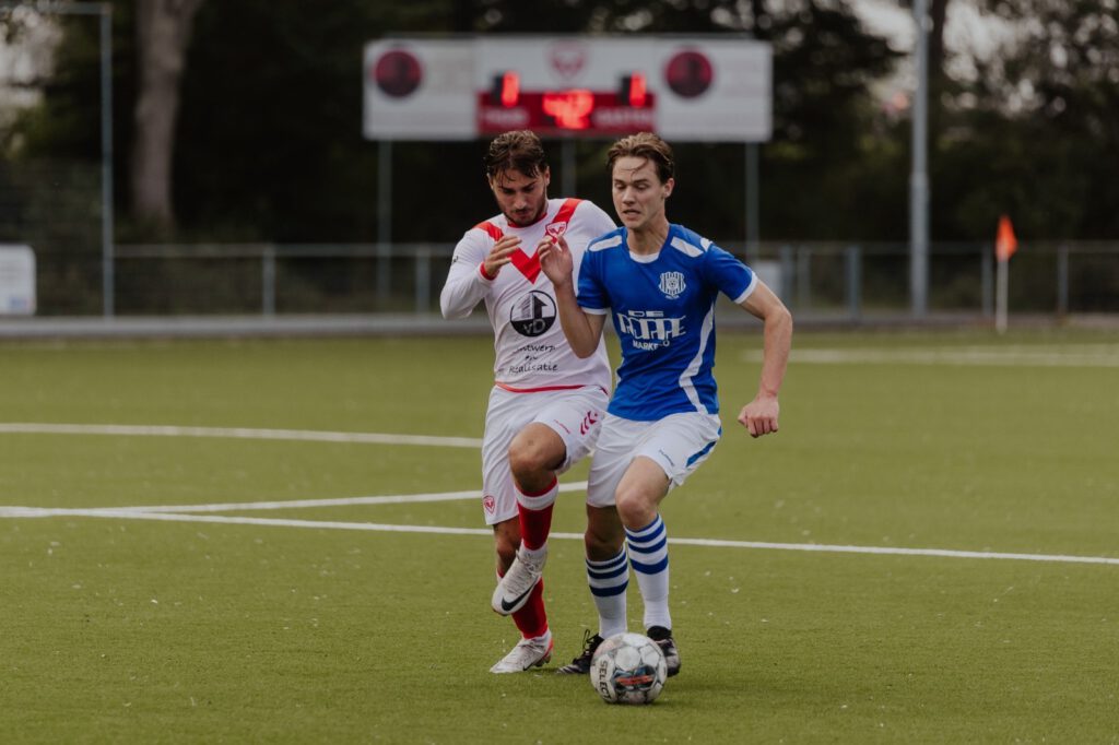 In de openingsfase hebben de bezoekers veel balbezit. Tot echte grote kansen leidde dit niet maar Kick Hulscher redde nog een keer goed op de lijn met de voeten. Blauw Wit speelde zonder buitenspelers en door het overtal op het middenveld waren we zonder bal erg op zoek naar de beste manier om dit op te pakken.